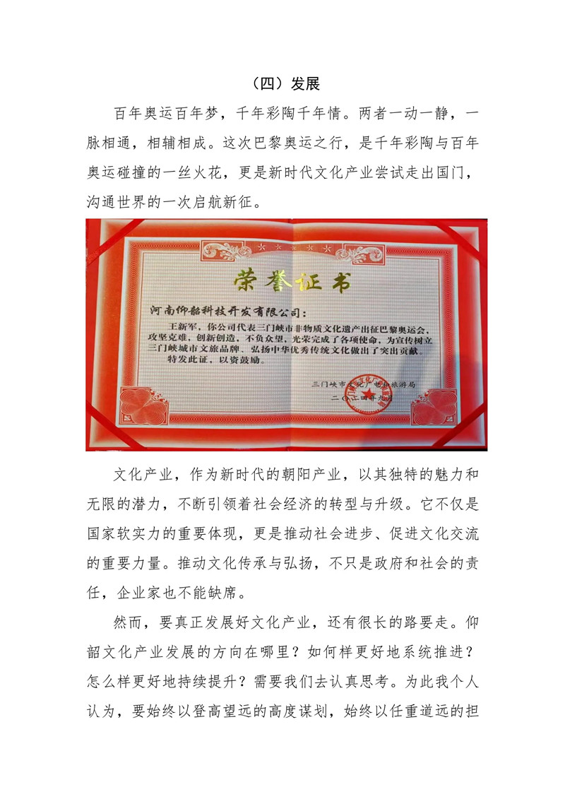 董事長王新軍攜"花開奧運“文創(chuàng)彩陶遠赴巴黎奧運會