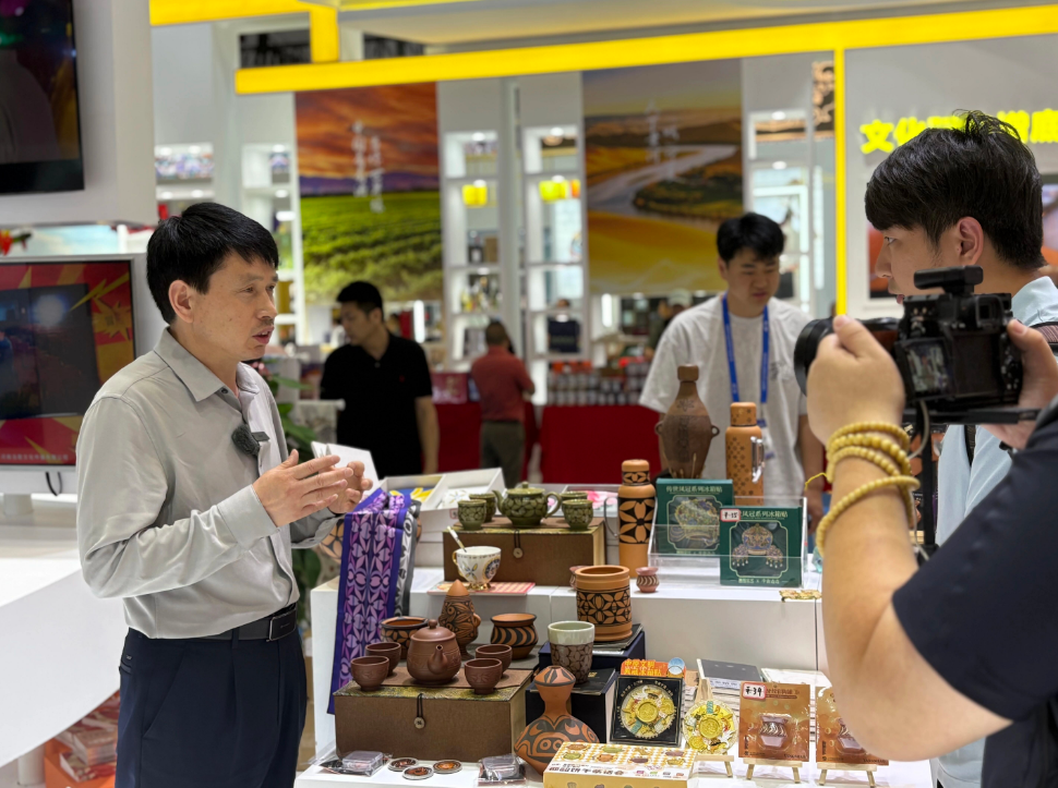 展會期間,董事長王新軍成為了仰韶文化有力的當(dāng)代“代言人”。他精神飽滿,從容應(yīng)對來訪媒體的鏡頭與話筒,向全國乃至世界觀眾講述仰韶彩陶的獨(dú)特魅力與深厚底蘊(yùn)。從企業(yè)如何秉持匠心守護(hù)傳統(tǒng)工藝,到如何通過創(chuàng)新設(shè)計讓古老文物“活”在當(dāng)下。他的講述,讓仰韶文化從塵封的歷史中躍然而出,煥發(fā)出歷久彌新的時代光彩。
